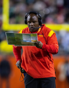 Bienemy, who was the Chiefs’ running backs coach for the five years before he was promoted to offensive coordinator, took a dual assistant head coach/offensive coordinator role with the Commanders in 2023 and UCLA in 2024. Neither team’s offense excelled with Bienemy in Charger. The Commanders ranked among the NFL’s bottom-10 offenses in 2023, while UCLA averaged just 18.4 points in 2024, the third-fewest in the Big Ten.