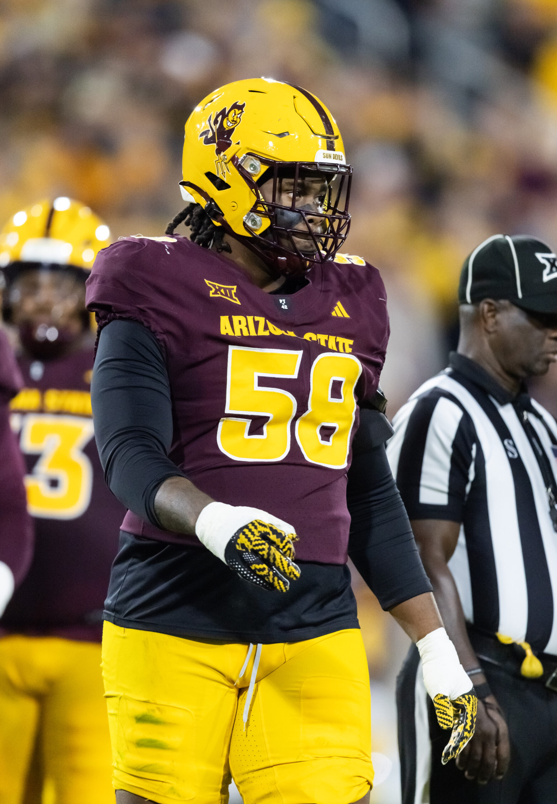 The 6-foot-4, 253-pound Lawrence’s college career took off as a redshirt sophomore in 2023. He registered 10.5 tackles for loss and a personal-best 7.5 sacks in 13 games that year. Lawrence’s production dropped a bit during an 11-game 2024 (six TFL, five sacks), but he earned a first-team All-Big 12 selection last season. Over 12 games, Lawrence picked up 11 TFL and seven sacks.